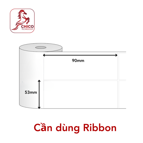 Mỗi tem có kích thước 53x90mm, tương đối rộng, đủ để hiển thị tên sản phẩm, mã vạch, số lô, logo, ngày sản xuất – hạn sử dụng. Thiết kế 2 tem trên 1 hàng giúp tối ưu tốc độ in và tiết kiệm thời gian.