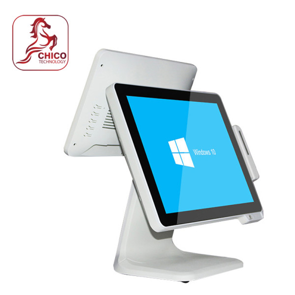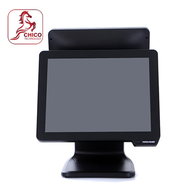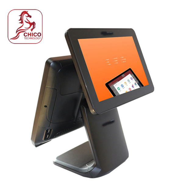 Thiết bị sử dụng bộ xử lý Intel J4125, RAM 4GB và SSD 128GB, đủ khả năng chạy các phần mềm bán hàng phổ biến. Thiết kế hai màn hình giúp nhân viên thao tác trên màn hình chính trong khi khách hàng theo dõi hóa đơn trực tiếp trên màn hình phụ.
