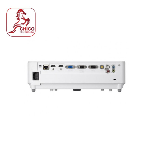 Các cổng kết nối gồm HDMI, VGA, USB, LAN và RS232 giúp máy chiếu tích hợp linh hoạt trong các hệ thống trình chiếu chuyên nghiệp.