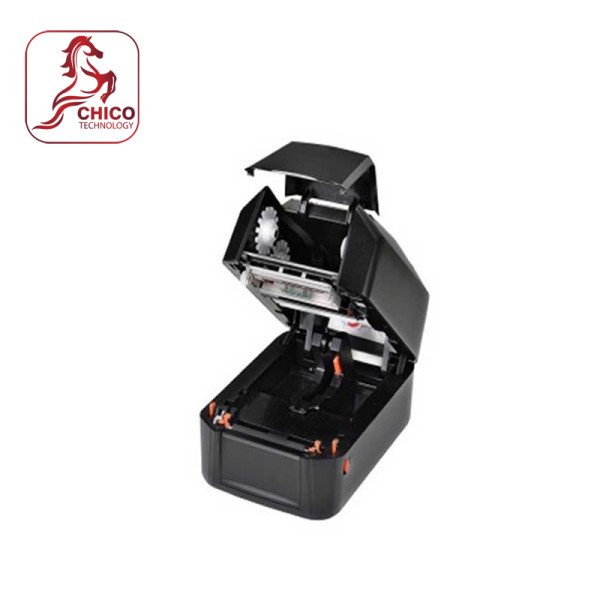 Máy có thiết kế dạng clamshell (mở nắp), giúp dễ dàng thay giấy và ribbon. Vỏ nhựa hai lớp giúp tăng độ bền và giảm tác động từ môi trường làm việc.